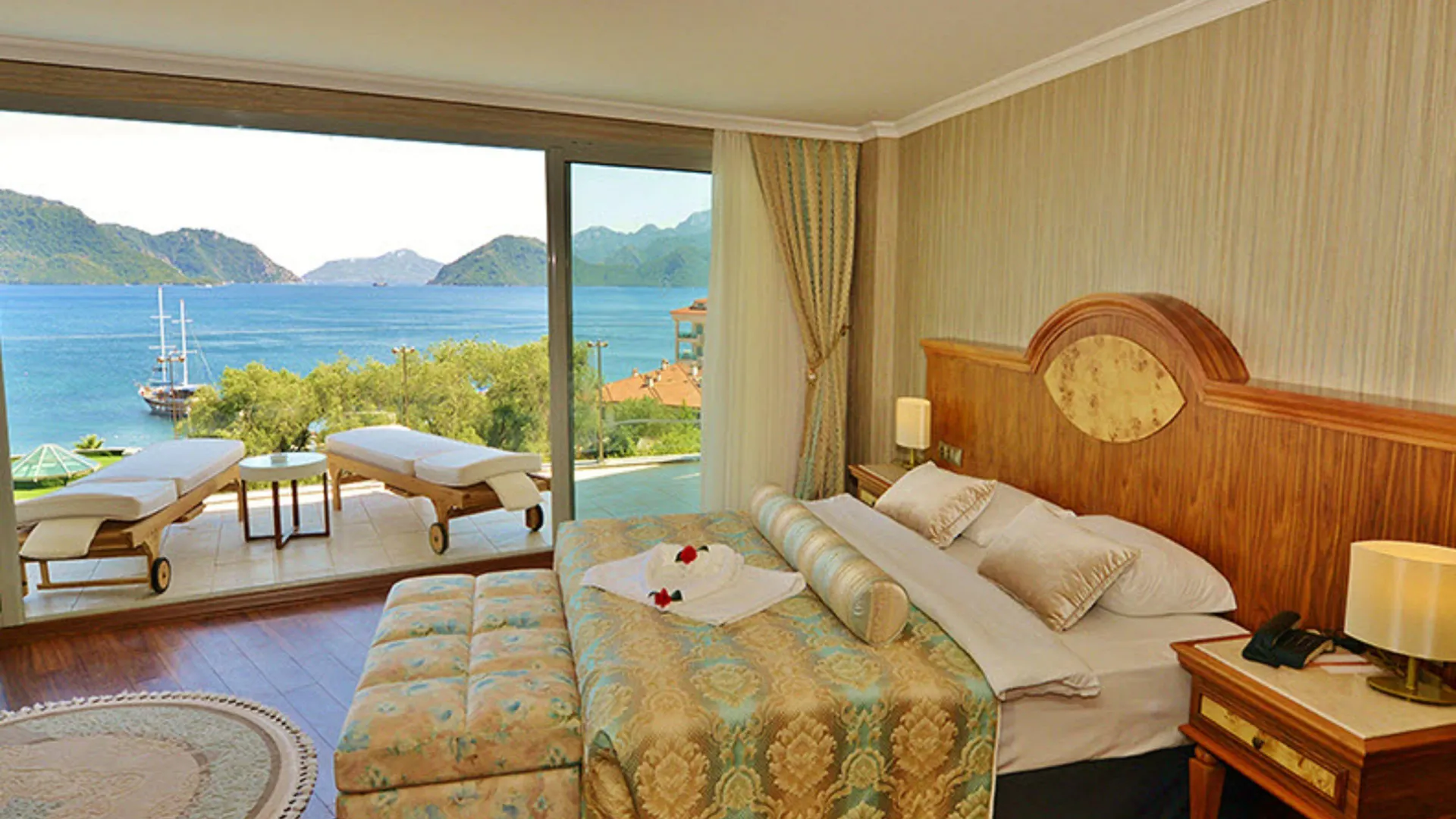 De jachthaven van Marmaris ligt op 2 km afstand van dit hotel met 551 kamers, terwijl de Grand Bazaar van Marmaris 2,1 km verderop is gelegen. Het is ook op 550 meter loopafstand van het Blauwe vlag strand.